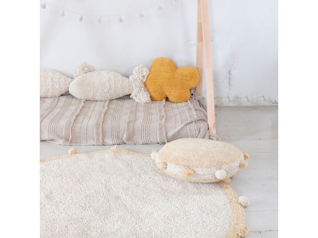 Perna decorativă Bubbly, cu bule vesele de culoare galben-miere, este un plus frumos pentru covorul pentru copii din aceeași colecție de la Lorena Canals. Perna poate fi spălată la mașina de spălat, ceea ce va fi apreciat de toate mamele. Micuții tăi neastâmpărați o pot murdări în voie, datorită întreținerii ușoare. Dimensiune: 48 cm