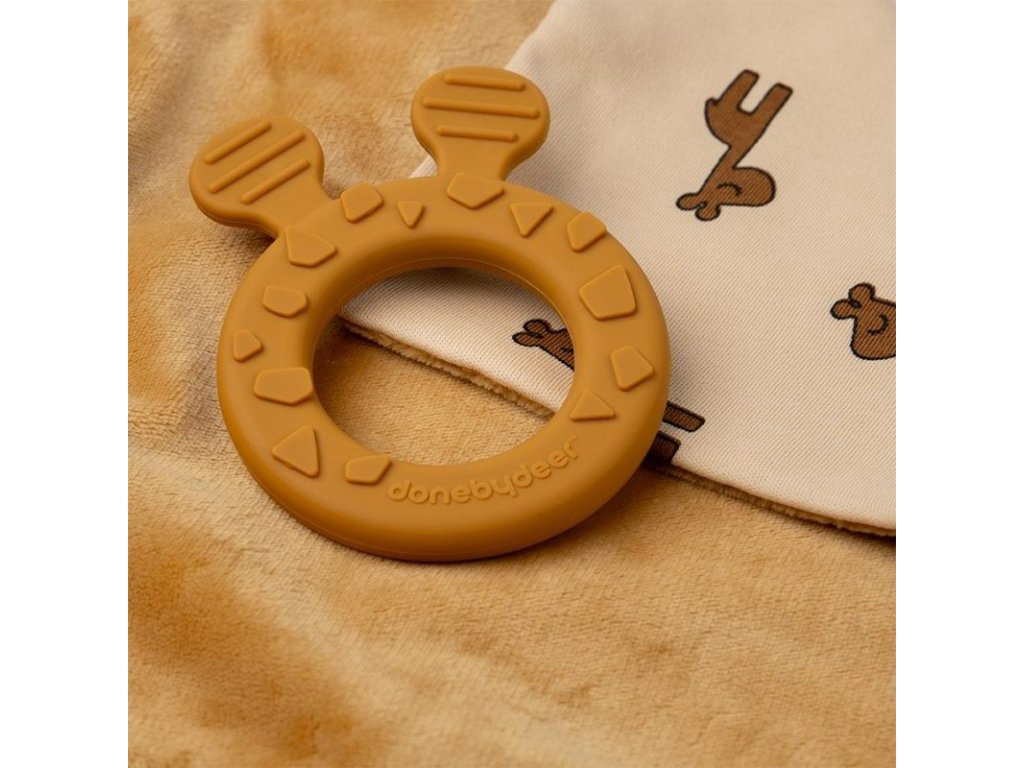 Jucărie de atașament cu inel de dentiție Raffi, muștar | Done by Deer