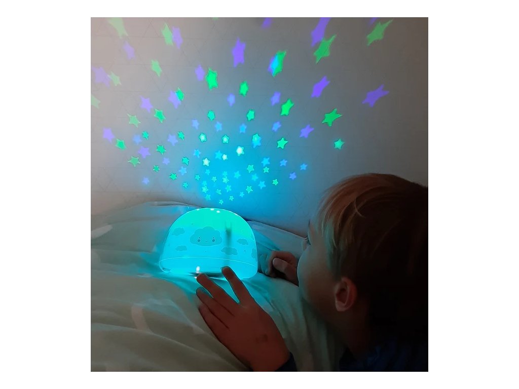 Această lampă proiector albastră deschisă, cu motivul unui vehicul, creează un cer înstelat magic pe tavanul camerei copilului dumneavoastră. Este fără fir, astfel încât o puteți transporta cu ușurință și o puteți așeza oriunde. Folosind comutatorul, puteți alege între culorile curcubeului, portocaliu, verde și albastru. Un temporizator practic oprește automat proiectorul după 30 de minute, astfel încât copilul dumneavoastră să poată adormi liniștit.