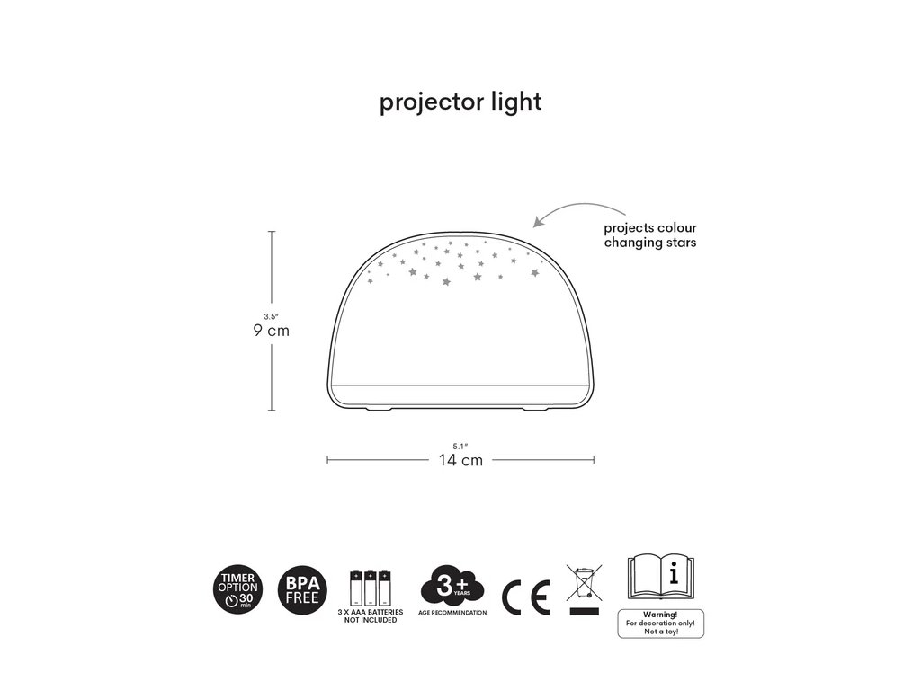 Această frumoasă lampă verde mentă proiectează un cer înstelat direct pe tavan și creează o atmosferă liniștitoare pentru adormire. Designul fără fir o face ușor de transportat, astfel încât o puteți lua oriunde . Cu ajutorul comenzilor simple, puteți alege între diferite culori – portocaliu, verde, albastru sau nuanțe de curcubeu! Temporizatorul inteligent se oprește automat după 30 de minute, astfel încât copiii să poată dormi liniștiți. Însoțitorul perfect pentru micii aventurieri!