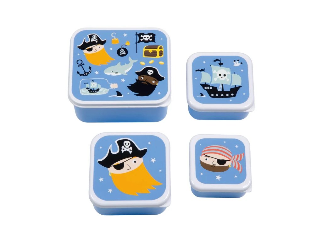 Împachetează-ți prânzul ca un adevărat pirat! Acest set albastru cu tematică pirat conține 4 cutii practice de diferite dimensiuni, care se pot stivui ușor una în cealaltă – ideale pentru prânz, gustări și fructe.