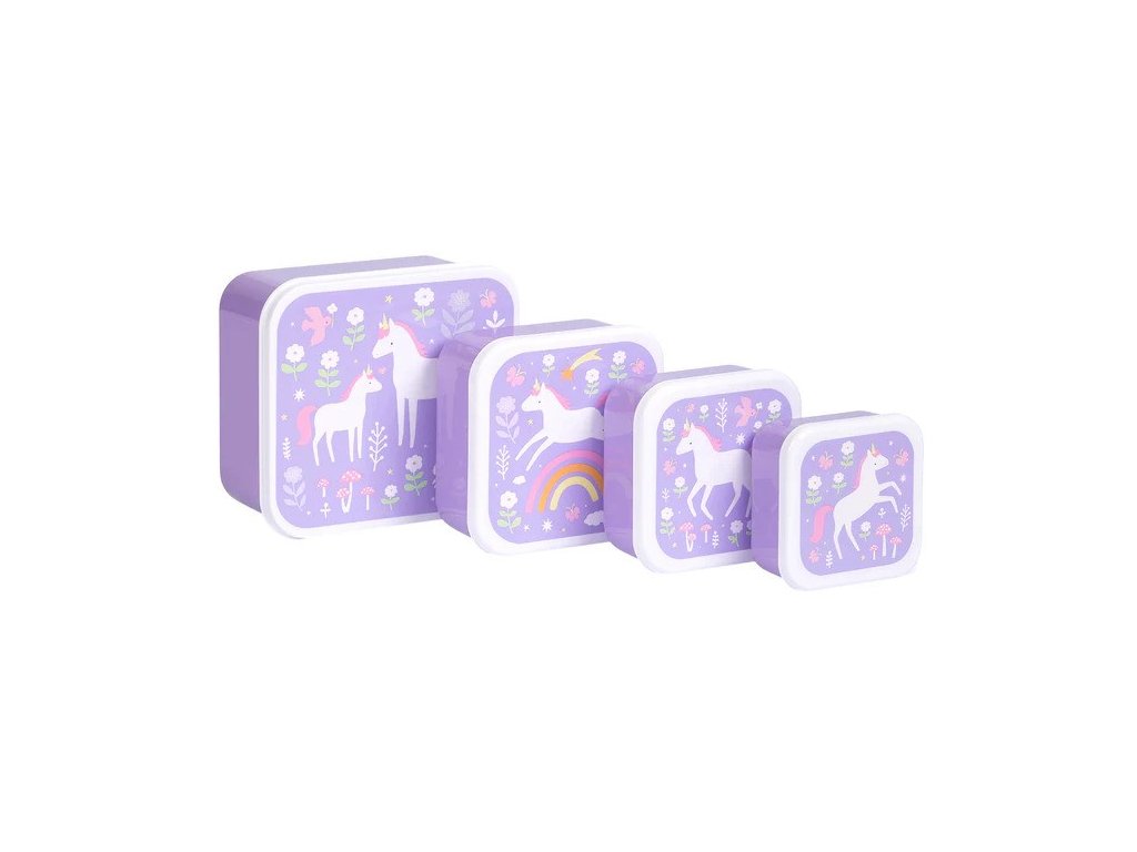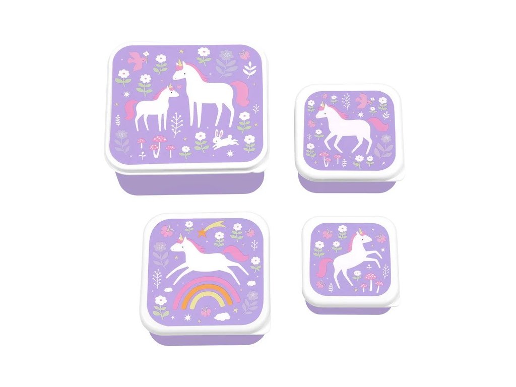 Un set magic de cutii pentru prânz și gustări cu unicorni, flori și curcubee – ideal pentru micii visători la școală și în deplasare! ? Conține 4 cutii practice de diferite dimensiuni, ușor de depozitat și de transportat oriunde.