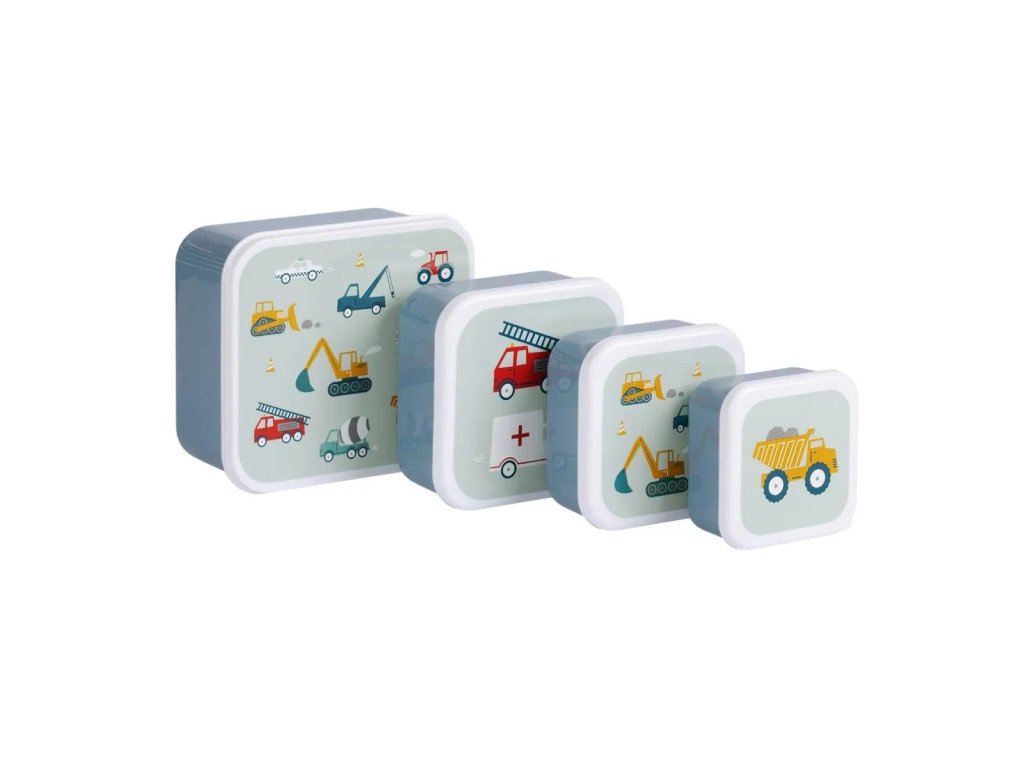 Acest set de cutii pentru prânz și gustări, de culoare albastru deschis, cu tematică auto, va încânta pe toți micii pasionați de mașini și vehicule! Ideal pentru școală și excursii – 4 cutii practice, de dimensiuni diferite, care pot fi ușor stivuite și depozitate.