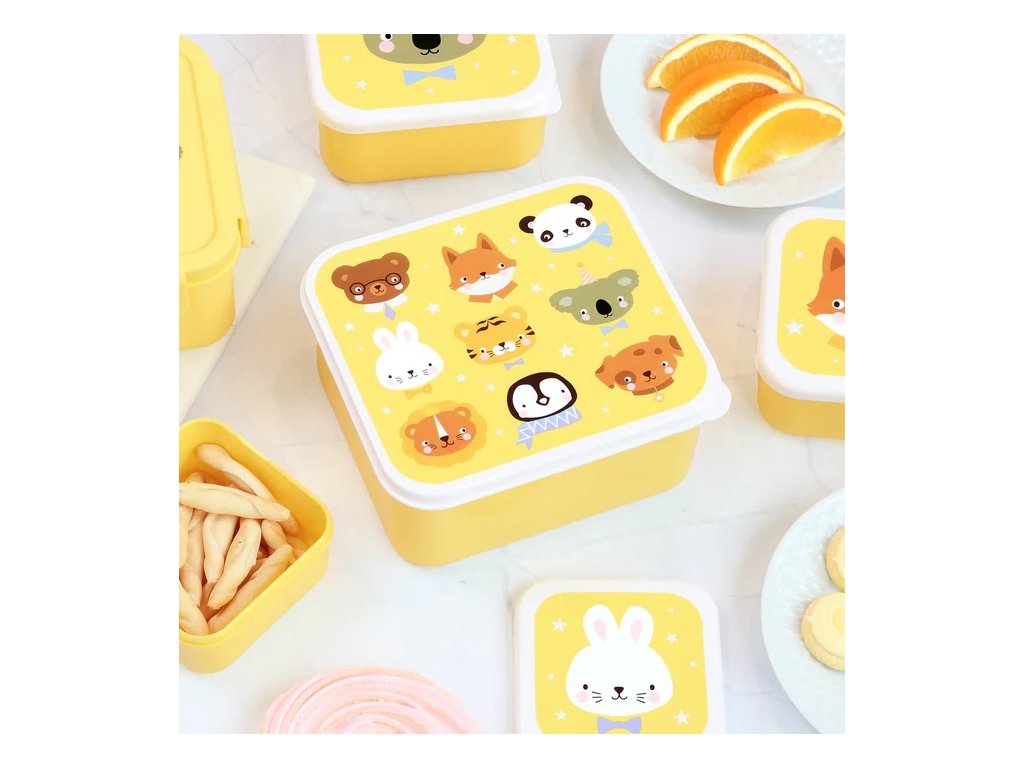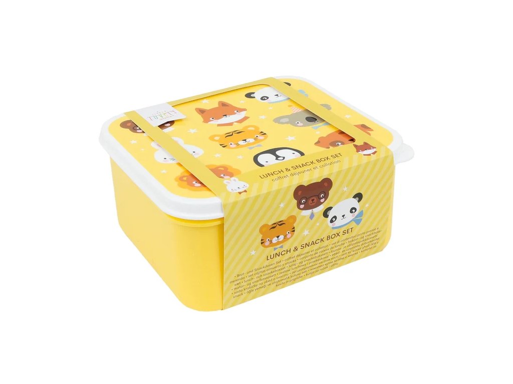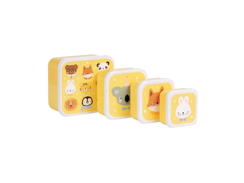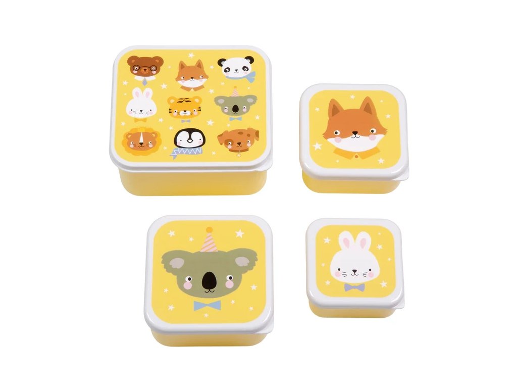 Setul de cutii galbene cu animale prietenoase este ideal pentru prânzul la școală și excursii! Conține 4 cutii practice de diferite dimensiuni, care pot fi depozitate ușor una în cealaltă – perfecte pentru prânz, gustări și fructe.