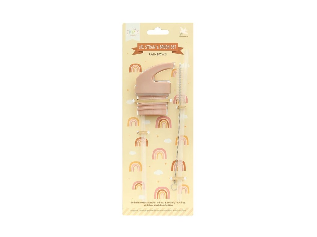 ? Adaugă un set roz elegant sticlei tale! Acest set include un capac, un pai și o perie, ideale pentru sticle din oțel inoxidabil A Little Lovely Company cu o capacitate de 350 ml și 500 ml. Completarea perfectă pentru colecția Rainbows and Butterflies!