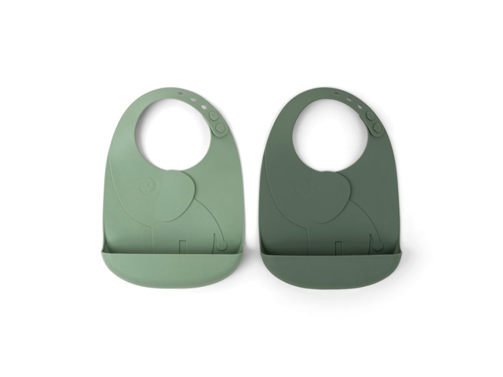 Set de bavete din silicon 2buc Peekaboo, verde | Done by Deer