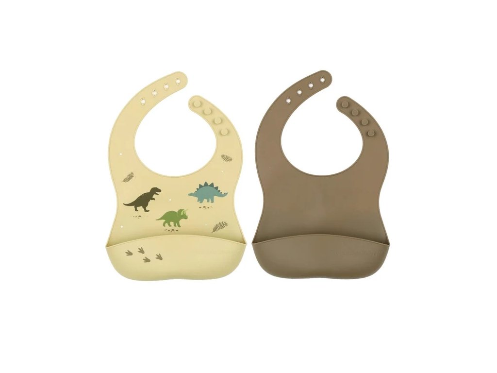 Bavete din silicon, set 2buc: Dinozauri