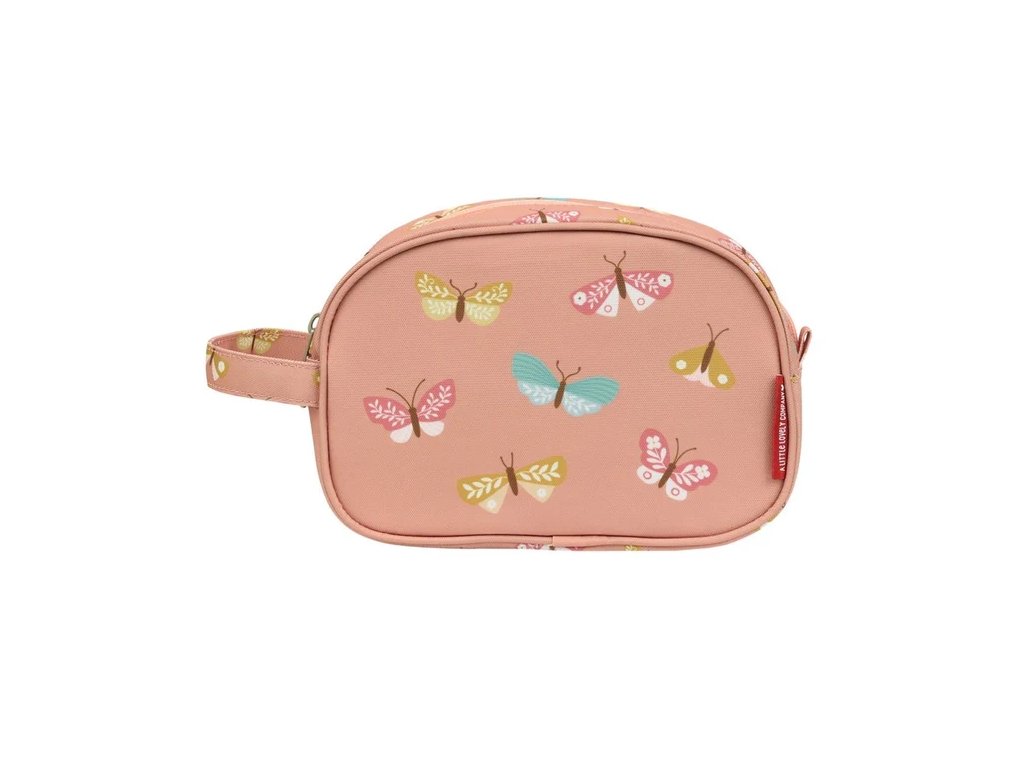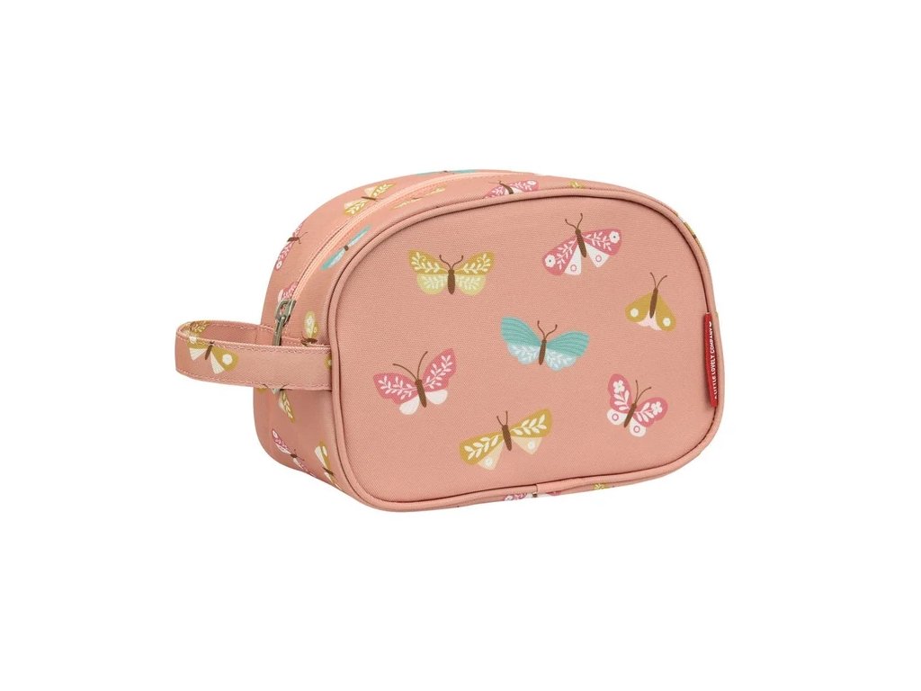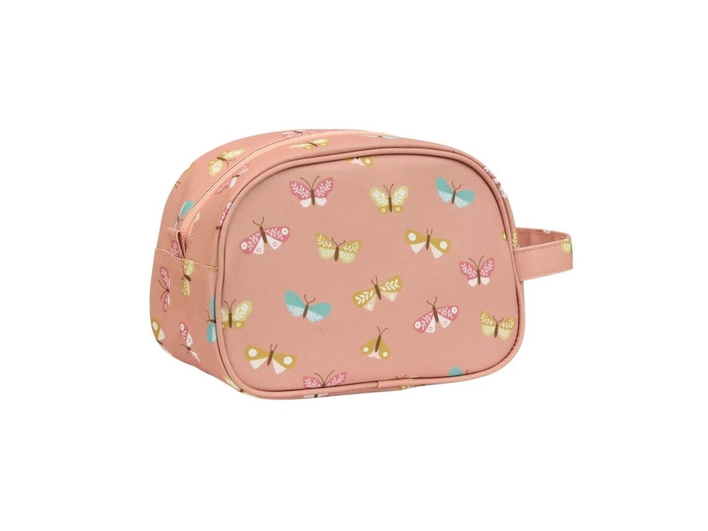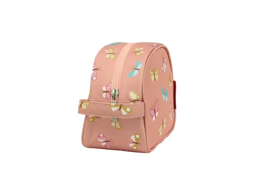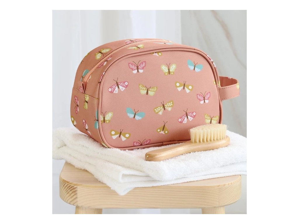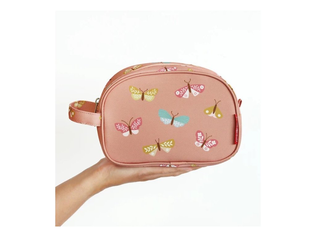 Această geantă spațioasă de toaletă roz cu fluturi este ideală pentru vacanțe sau petreceri în pijamale. Oferă mult spațiu pentru șampon, periuță de dinți, pastă de dinți și alte articole esențiale. O buclă practică o face ușor de transportat sau de agățat.