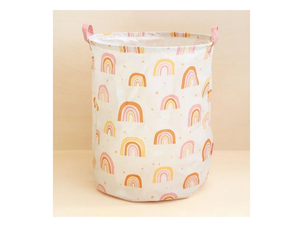 Coș de depozitare adorabil cu motiv curcubeu – perfect pentru jucării și rufe!