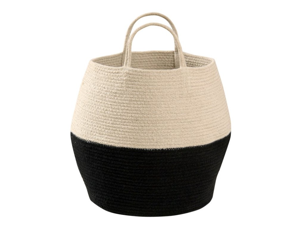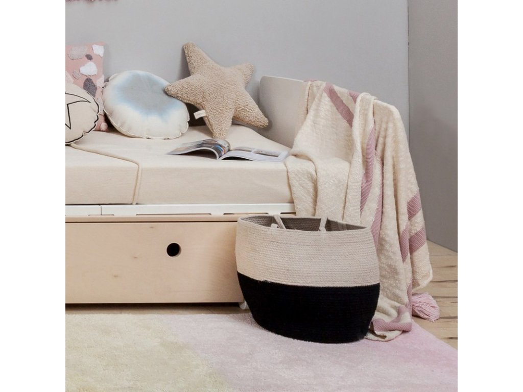 Coș de depozitare Zoco cu mânere, în culoarea alb natural combinată cu negru. Lăsați-vă copiii să se joace și să fie eleganți în timp ce își depozitează toate obiectele mici în acest coș frumos, care se va potrivi perfect cu alte accesorii de la Lorena Canals. Poate fi asortat cu ușurință cu un covor, o pătură, un puf sau o pernă, toate disponibile într-o gamă largă de la acest brand. Datorită versatilității sale, nu este potrivit doar pentru interiorul camerelor copiilor, ci poate fi amplasat și în sufragerie, dormitor sau hol.