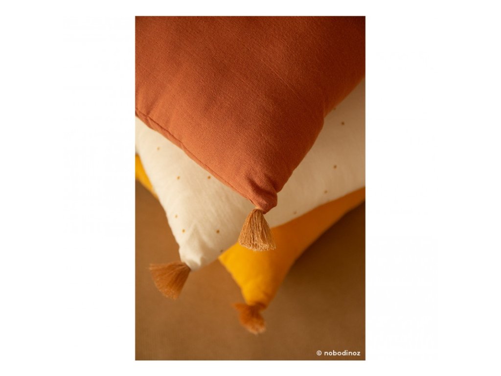 Pernuță decorativă dreptunghiulară cu ciucuri pom-pom, nu doar frumoasă, ci și moale și plăcută la atingere. Va fi un accesoriu minunat în orice cameră de copil, fie în pătuț, în fotoliul pentru copii sau sub baldachin, unde vă puteți așeza lângă cei mici pentru a le citi povești. Accesoriile mărcii Nobodinoz vor crea cu siguranță în camera copilului dumneavoastră acea atmosferă magică pe care copiii o adoră.