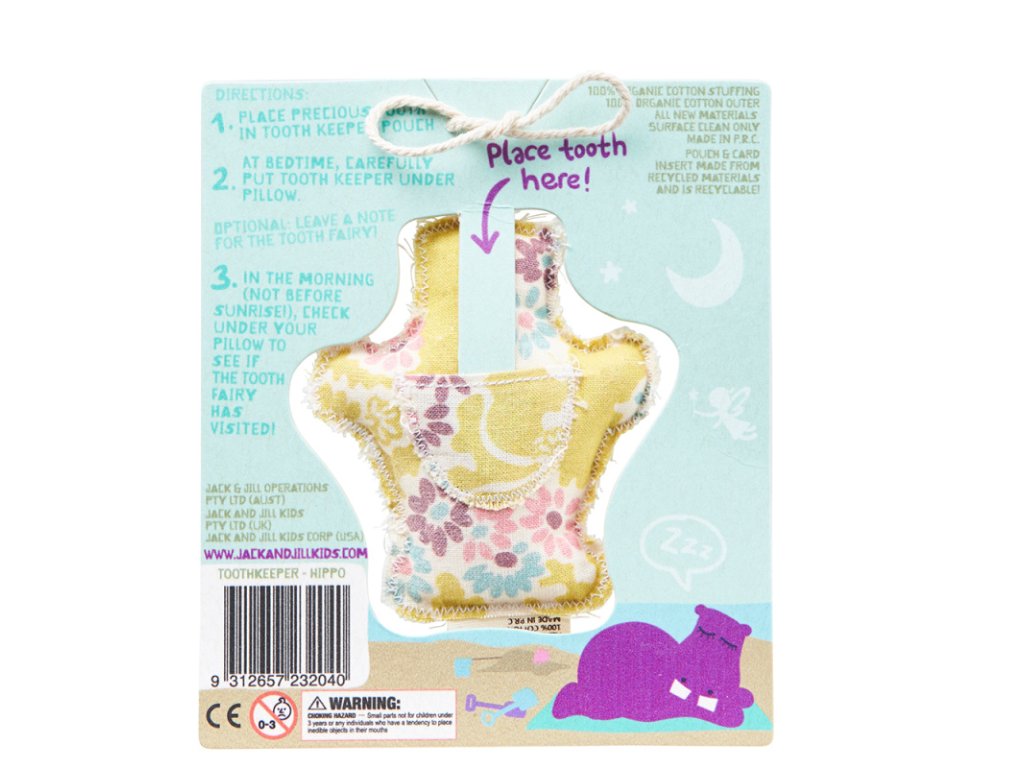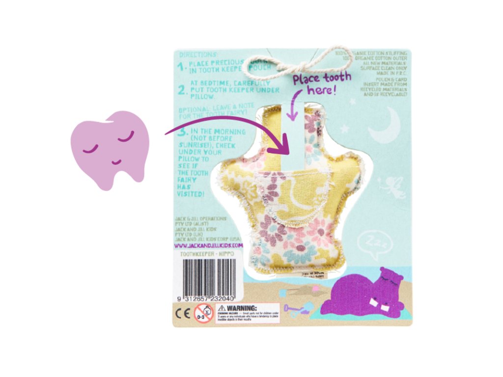 Această geantă drăguță va servi drept gardian pentru fiecare dinte care cade. Pur și simplu puneți dintele înăuntru, ascundeți-l sub pernă și verificați dimineața dacă zâna dinților v-a vizitat. Datorită pungii, zâna va găsi imediat fiecare dinte și, în schimb, va pune înăuntru un cadou frumos pentru copilul tău.