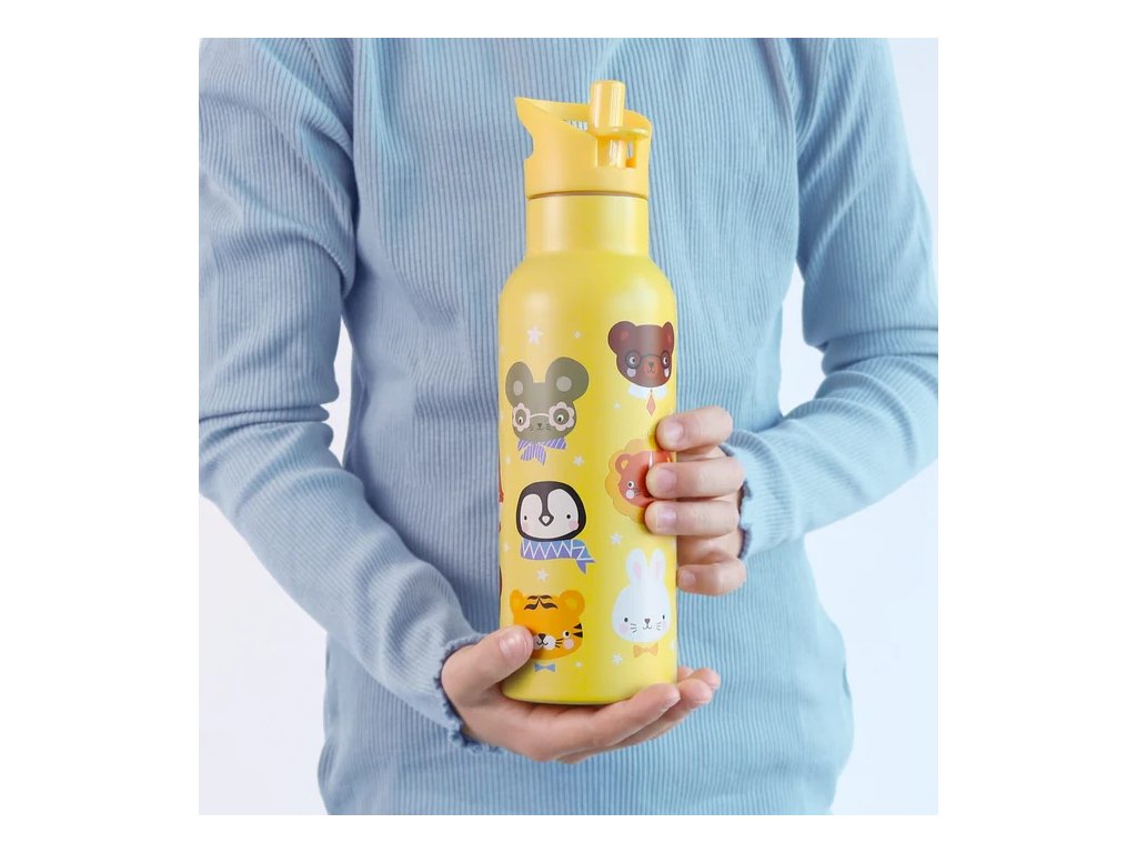Sticla extra mare din oțel inoxidabil cu animale prietenoase este ideală pentru zile lungi de școală și excursii – menține băuturile reci toată ziua ?. Include un capac cu pai pentru băuturi reci; un capac pentru băuturi calde este disponibil separat ?.